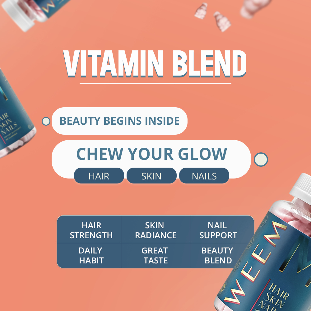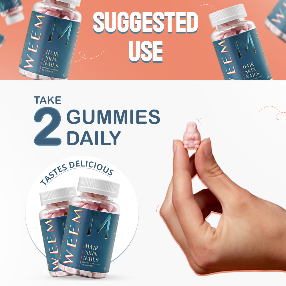 With the delicious Weem Gummies with Hair Vitamins every day, it is possible to nourish your skin, hair, and nails right from the inside.